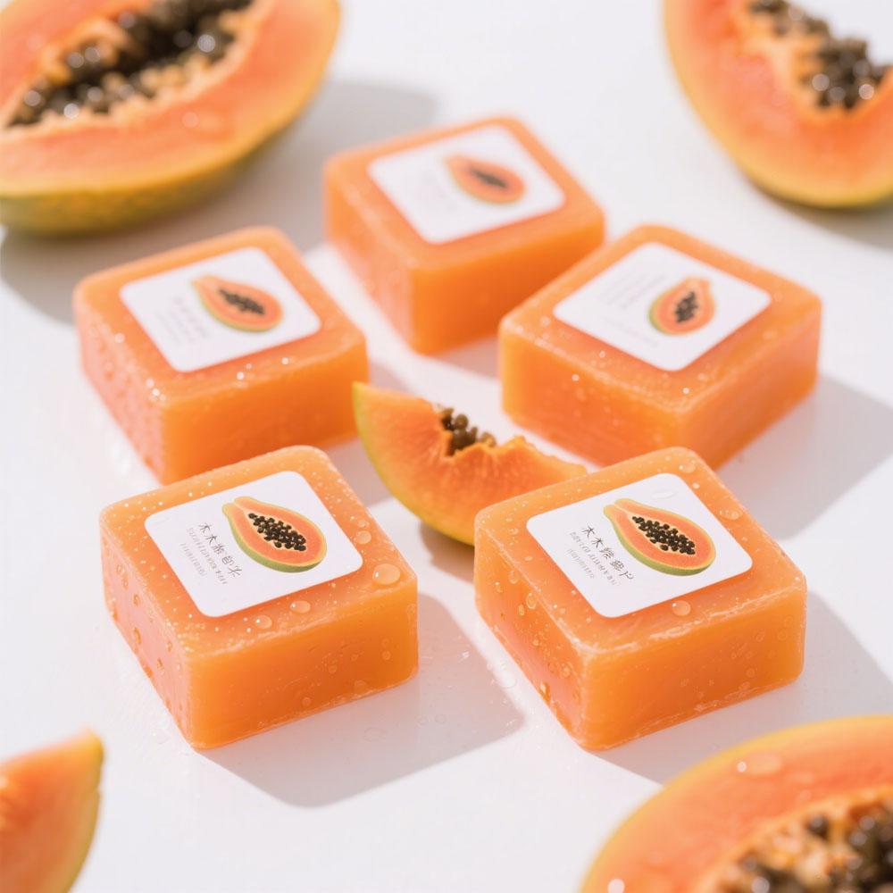 We are a direct soap manufacturing factory offering private label and wholesale services This Papaya Fruity Kojic Whitening Soap is formulated for effective skin lightening brightening and blemish reduction made with natural fruit enzymes and kojic acid for powerful yet gentle results